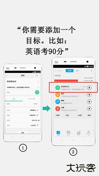 1、新手最开始使用时,首先需要为自己定下一个目标,例如英语考90分,它会作为你的动力源