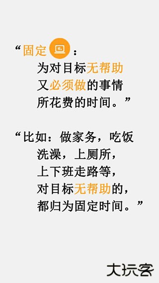 4、橙黄色的标志是固定时间,也就是对目标无帮助但是又必须去做的事情所花费的时间