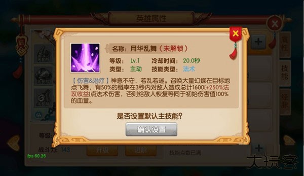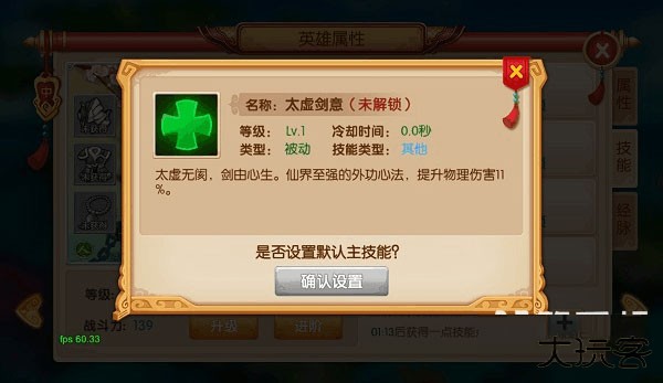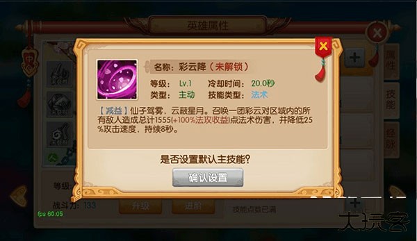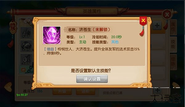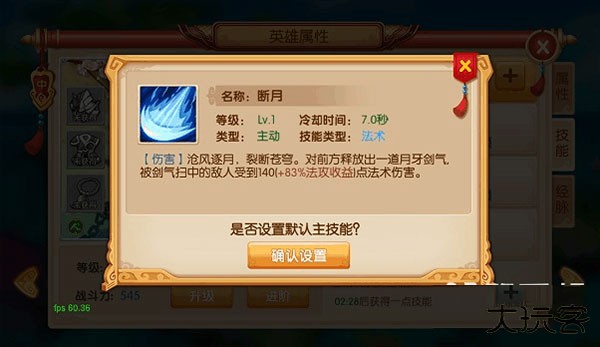 2、除被动技能外,每个英雄上阵时只能使用一个特定技能,只需将那个技能设置为默认主技能即可。
