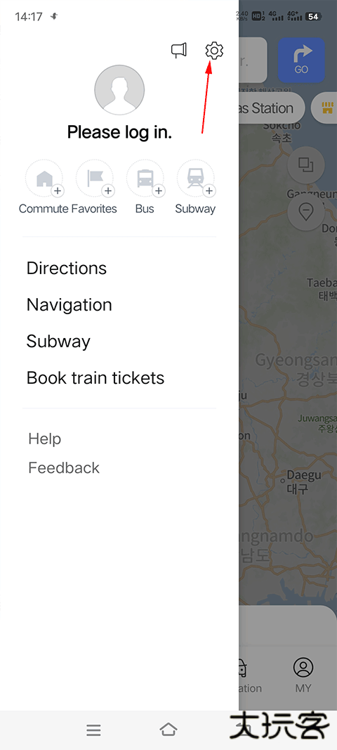 1、打开naver map官方版,进入应用主界面,可以用facebook或Line账号登录,