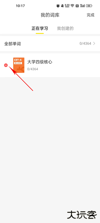 3、回到我的词库页面,点击右上角编辑,将原来的词库删除,即可完成换书。