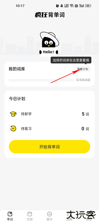 1、打开软件来到首页的查看计划,然后进入我的词库;