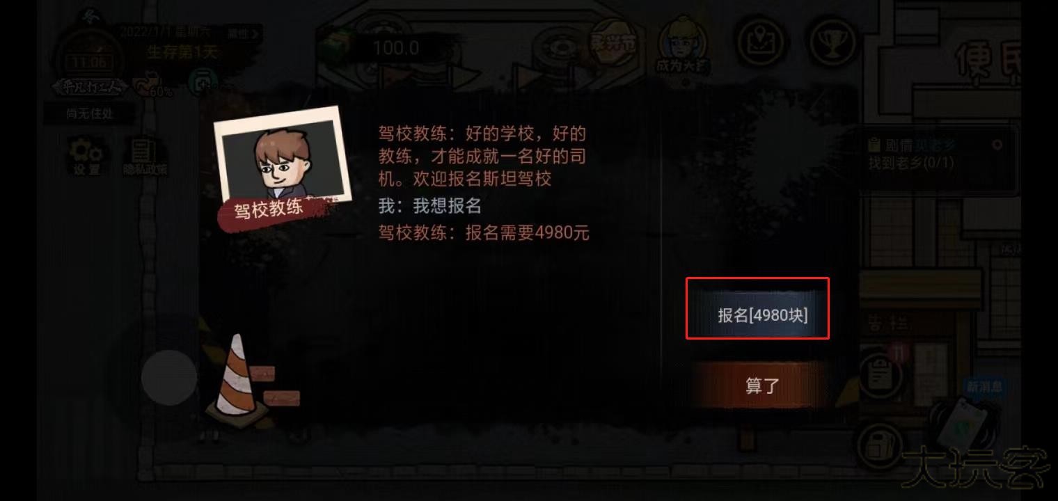 -前期傻了吧唧按着事件解锁工作,工资完全不够医药费和各种乱七八糟的费用,在拿不出工资以后,宣告游戏失败。