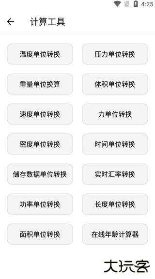 3、点开计算工具,涵盖了温度单位转换、压力单位转换、重量单位转换、体积单位转换等。