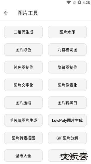 5、点开图片共苦,拥有二维码生成、图片水印、图片取色、九宫格切图、纯制作等。
