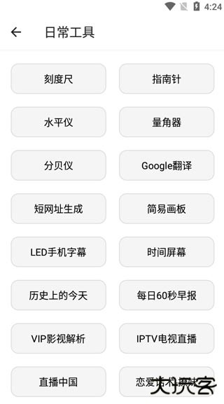 2、点开日常工具,涵盖了刻度尺、指南针、水平仪、量角器、Google翻译、短网址生成等。