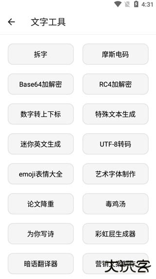6、点开文字工具,拥有拆字、摩斯电码、数字转上下标、特殊文本生成等等。