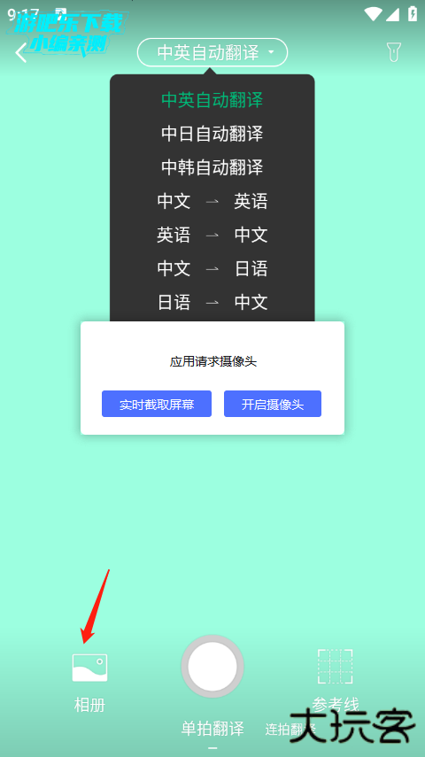 2、进入拍照界面后点击右下角的相册,选择你想翻译的截图就好了。