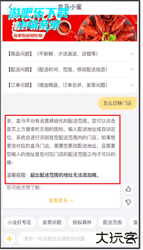在盒马鲜生app上有设置精细化的配送范围,系统会进行识别在你配送范围内的门店。
