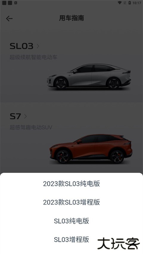 2、选择爱车的型号;