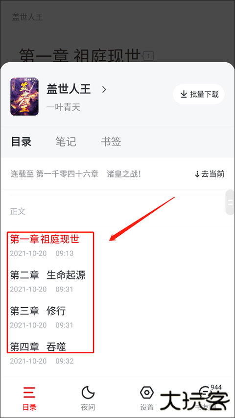 5、同时在下方我们还能够看见“批量下载章节”,我们可以点击来缓存该篇小说的章节,这样就算是离线也是能够阅读小说。