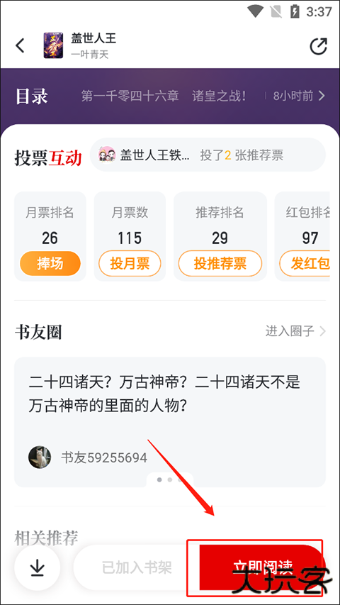 2、点击“立即阅读”即可进入阅读界面。