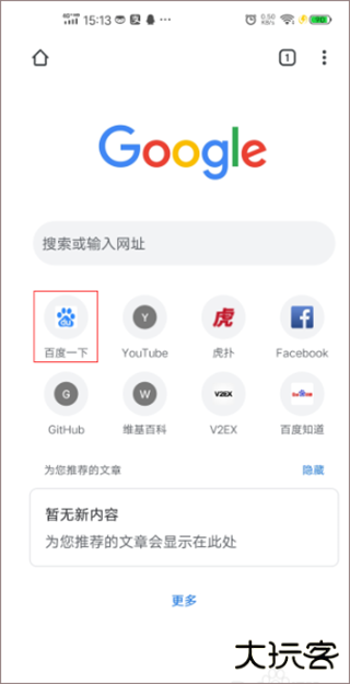 1、首先在手机上打开Chrome浏览器,在主界面中找到“百度一下”图标,点击打开它;