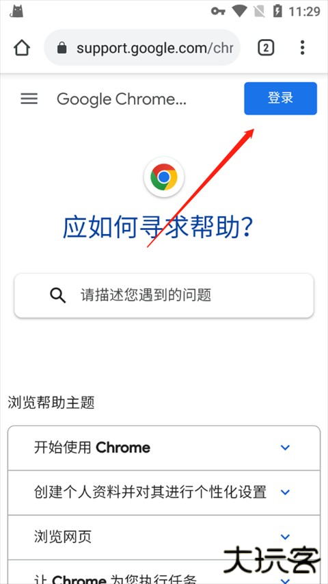 1、首先进入Chrome浏览器,点击右上角【登录】。