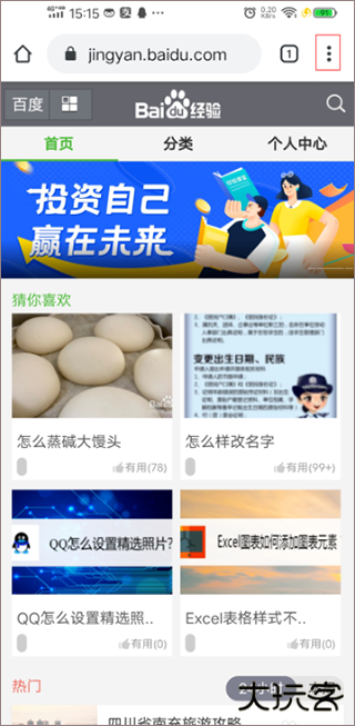 4、进入后,网站显示的是手机模式,我们需要设置为电脑模式才行,点击右上角的省略号符号;