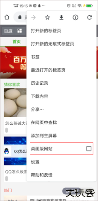 5、点击后弹出一个新的窗口,在窗口里面需要点击“桌面版网站”;