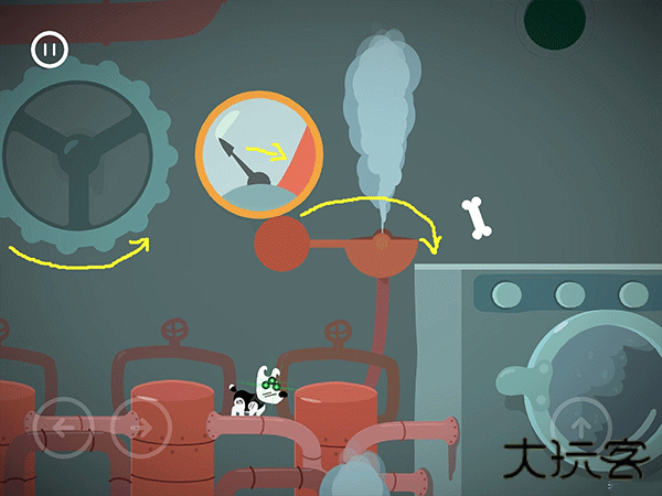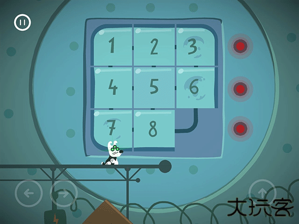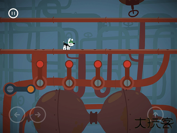 这边按了左边黄色按钮的时候,右边的门就开始计时下落了。这个板要先从右往左把板弄到最低,然后就可以吃完灯泡和骨头过闸门。切记不要慌张。