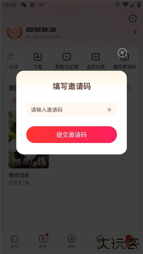3、准确输入邀请码,注意区分大小写,点击提交即可。