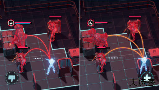 6、部署队友时可以通过观察威胁线来判断敌人的侧击情况,红色线代表敌人可侧击我方,橙色线代表敌人的攻击会被掩体挡住。