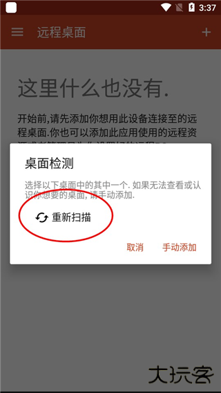 3、此时会出现如下界面,我们只需点击“重新扫描”即可,当然你也可点击手动添加;