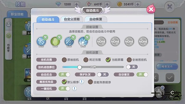 玩家们可以根据自身的职业特性,进行自动战斗的设定。如挂机的范围,是否返回原点等等。一般来说,远程职业手长,建议选择“原地挂机”,近战职业推荐选择“附近范围”都会比较安全。打开返回原位功能,可以避免挂机时走到其他地方影响刷怪效率。