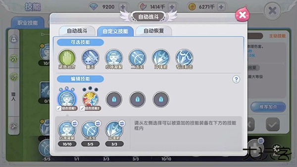 可以将3个主动技能整合为1个组合技能,在技能配置时,只占1个技能栏位。例如将BUFF类技能整合到一起,或将便于打出连招的技能进行组合。