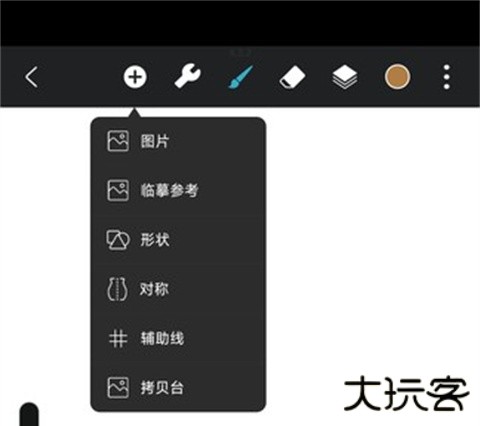 1、新建完自己的画布之后,点击上面的+号图标,弹出菜单栏,
