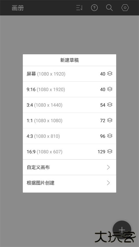 2、可以根据自己的需求选择尺寸,或者根据本地图片创建,