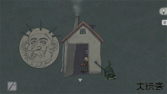 爬隧道进入医院,地图上有一间格子屋,通过它来到死胡同,右边墙上挂了一幅画,点开后不断点击画的右下角撕开,最后点击小脑人图案解锁本成就