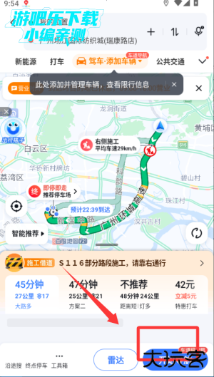 2、选择出行方式如驾车或公交,系统会推荐多条路线并显示实时路况。