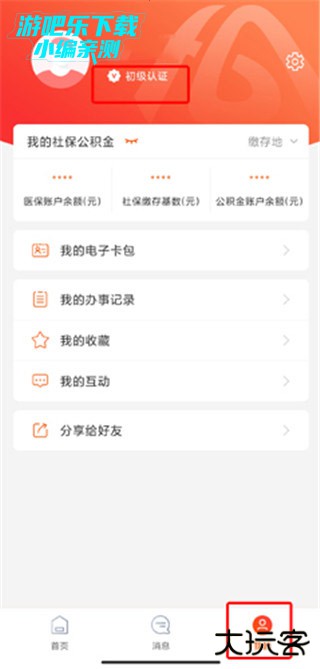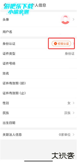 2、在个人信息页面中点击初级认证按钮