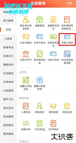 2、在页面右侧选择【社保】,点击【社保卡查询】