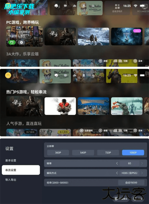 盖世游戏内置了鸡哥全新开发的串流软件 PC Link 和 PS Link。可以完美支持 PC、PS4 和 PS5 主机串流。