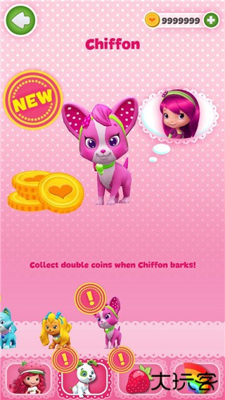 草莓公主甜心跑酷是一款以梦幻童话为主题的3D竖屏跑酷手游,游戏以草莓公主和她的伙伴们为主角,给玩家提供了丰富的角色选择,每个角色都有多个可更换外观和专属的宠物。游戏以跑酷为核心,给玩家提供了多个主题场景,每个场景的环境都不一样,而且还会随机生成各种各样的障碍物和道具,玩家可以收集场景中的金币,解锁新角色或者是外观。快来草莓公主甜心跑酷来一场梦幻的跑酷冒险吧!