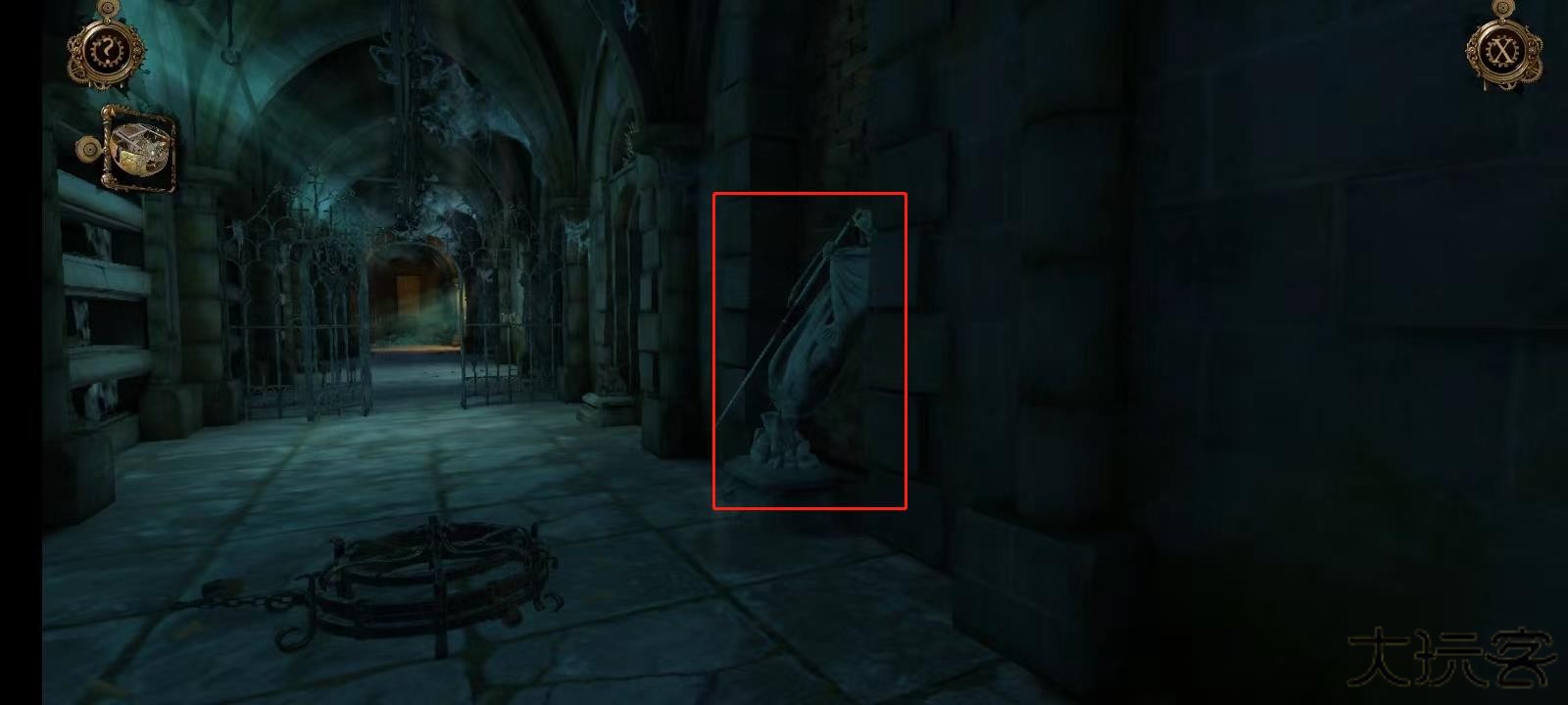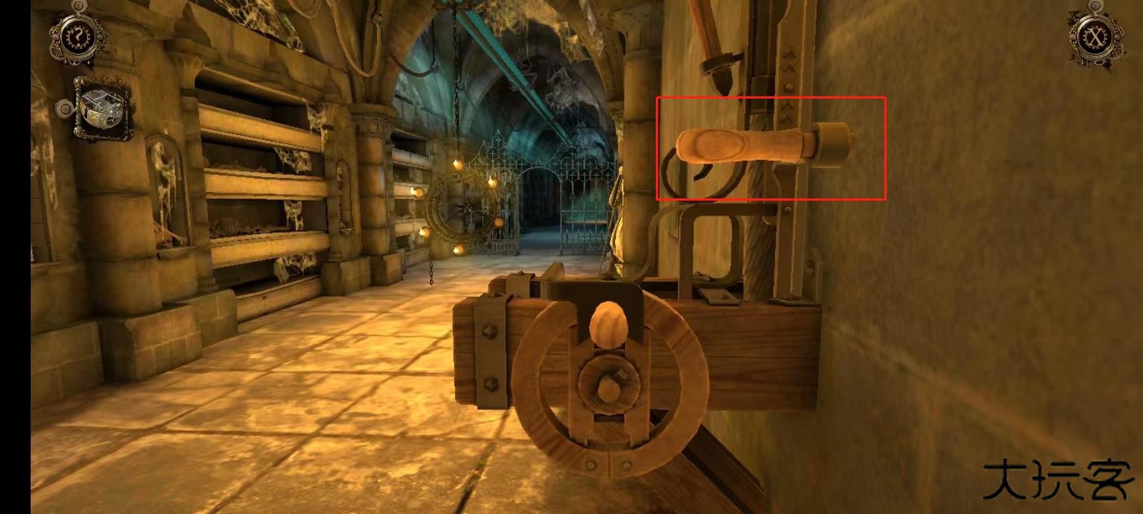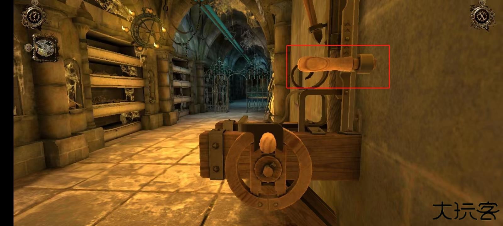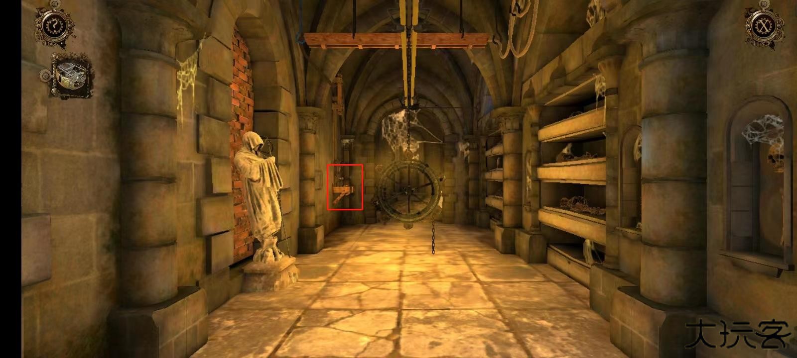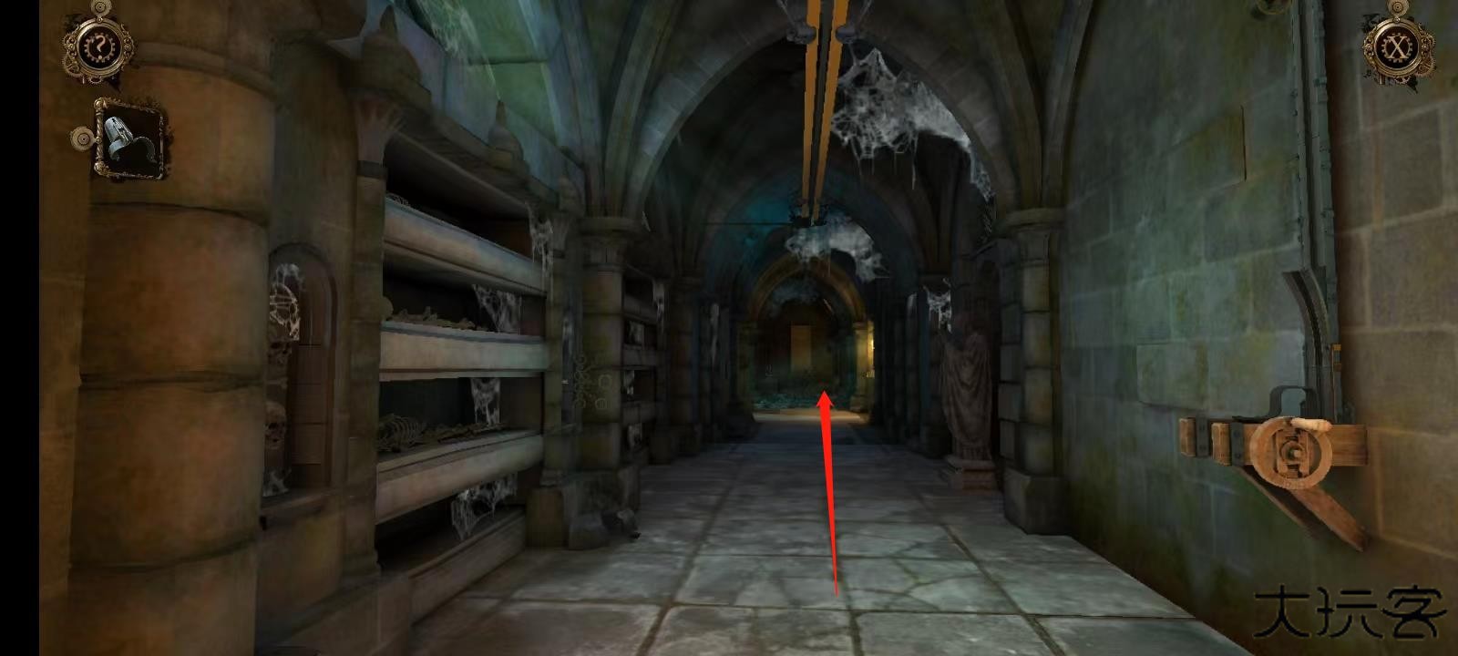 11、双击左侧墙壁上的机关;