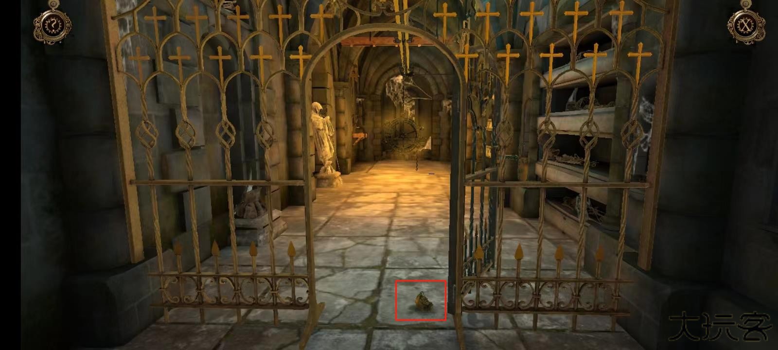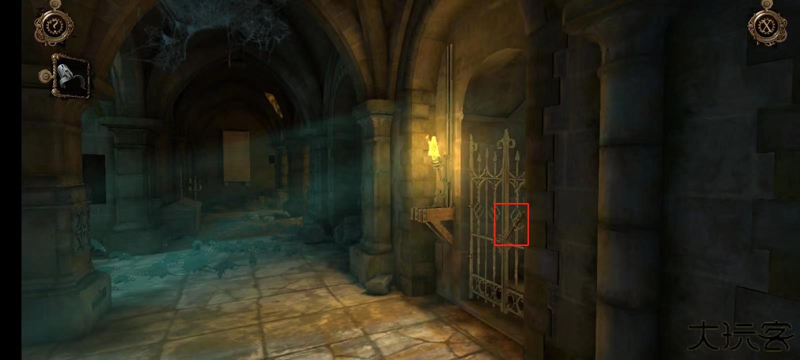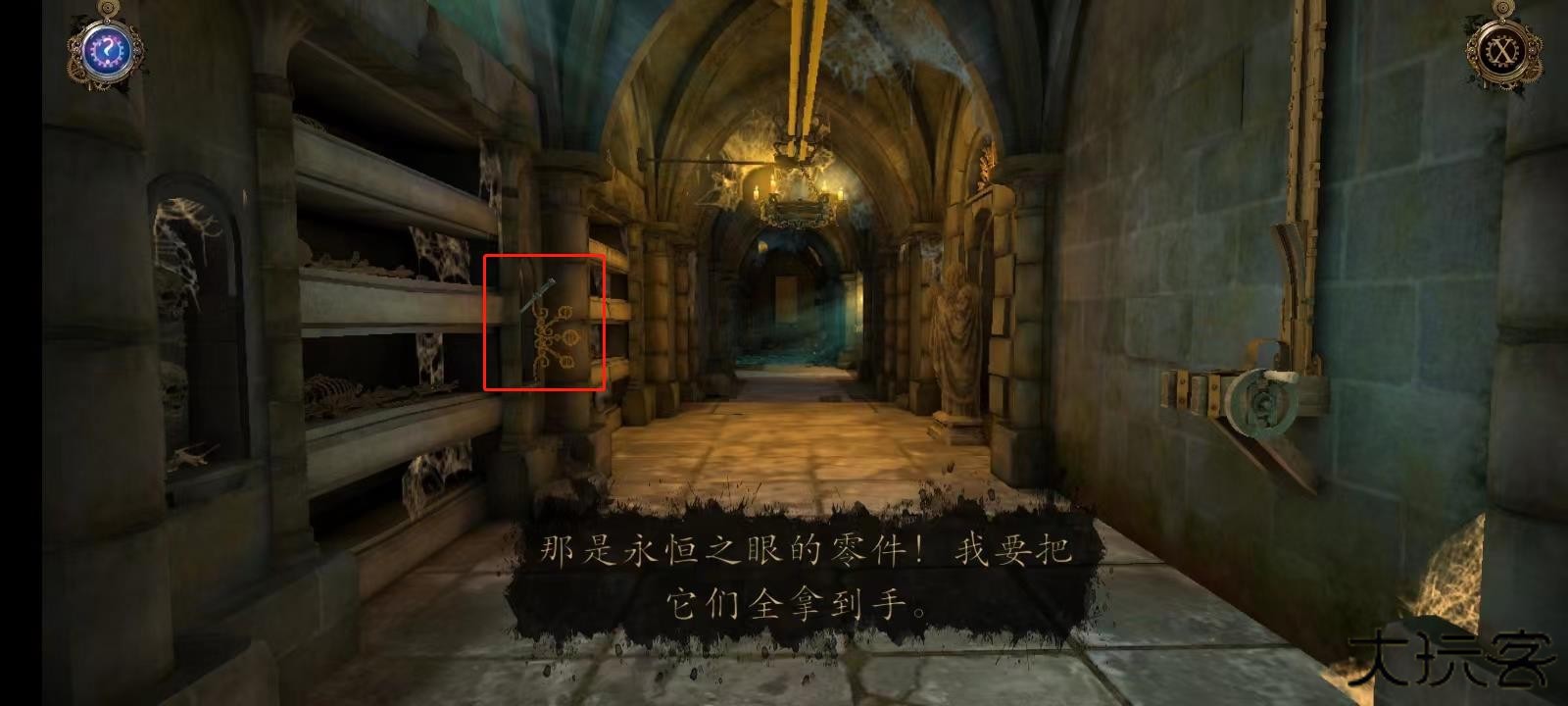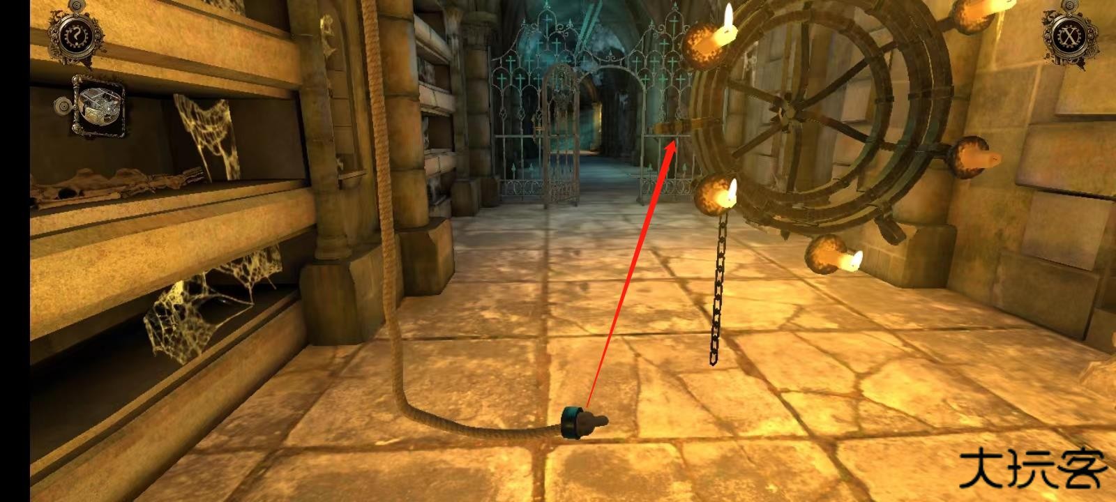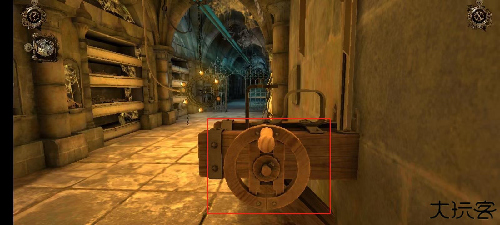 11、双击左侧墙壁上的机关;