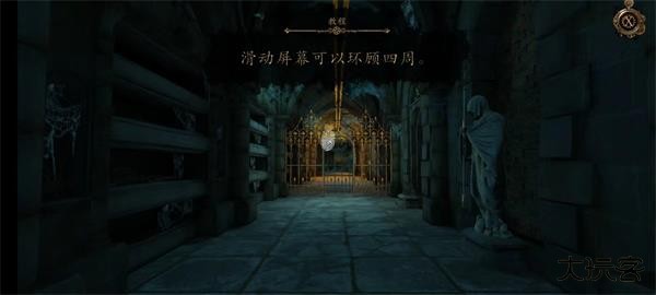 15、双击石像,按住石像不动,直到推开门,然后进入密室。
