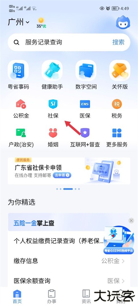 粤省事是一款很好用的移动政务服务平台。这里包含了超多的功能可以使用,大大的方便了广东人民的日常生活。可以在这里一键查询相关信息,在手机上就可以完成不同的政务服务内容!