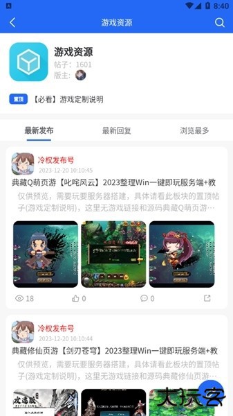 3.例如小编这里选择了游戏板块,这里会有拥有分享自己喜欢的游戏