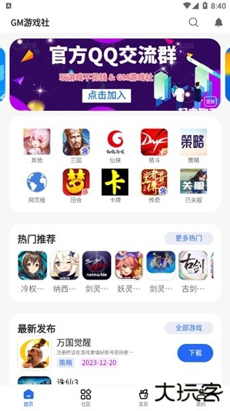 GM游戏社是一款有着海量游戏资源的平台,致力于为用户提供为用户提供最新、最热门的游戏资源。在这里,汇集了各类热门游戏的最新情况,包括:游戏开发进程、游戏上线时间、游戏攻略等等,让玩家可以第一时间了解到喜欢的游戏的最新消息。除此之外,软件还未广大的用户提供了一个交流社区,玩家可以在这个社区发布动态,可以和大神玩家学习游戏技巧,一起分享心得体会。
