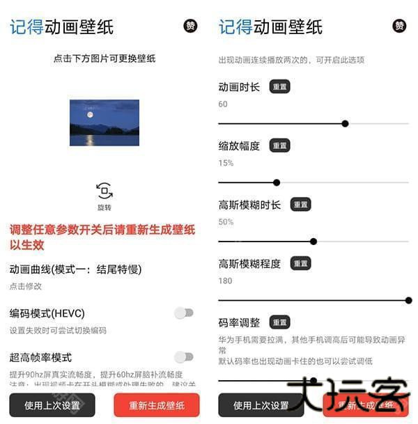 使用默认参数,将图像质量设置为最低,持续时间设置为最低。试着看看它是否可以移动。如果可以,慢慢增加这两个参数,直到达到可以移动的最大图像质量。自己在动画和图像质量之间取得平衡,或者重新启动手机以有机会解决问题。