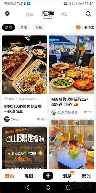 2、各种口碑美食、网红餐厅、吃货生活,还可以点击种草,创建自己专属的美食地图,海量福利也在这领取