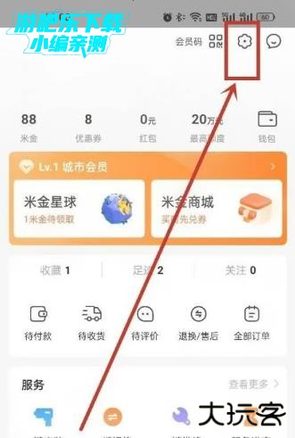 打开小米商城,在小米商城我的界面,点击右上角的设置小标志。