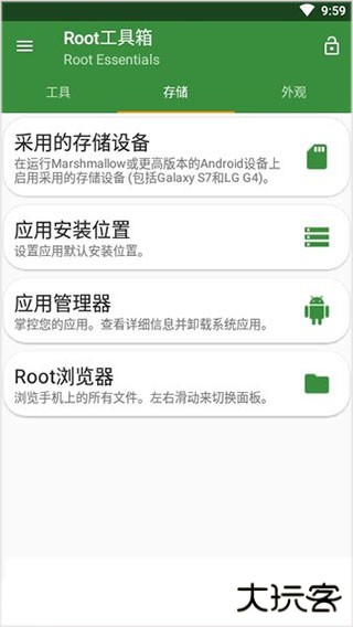 而且,用户可以通过Root工具箱自动卸载手机中不必要的系统应用,进一步提高手机的运行效率。另外还支持电池校准、Root检测、应用管理器以及root浏览器等功能,全面满足用户对手机管理的需求。