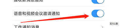 3、点击“语音和视频会议邀请通知右边的开关”,打开开关,这样就设置好语音和视频会议邀请通知了。