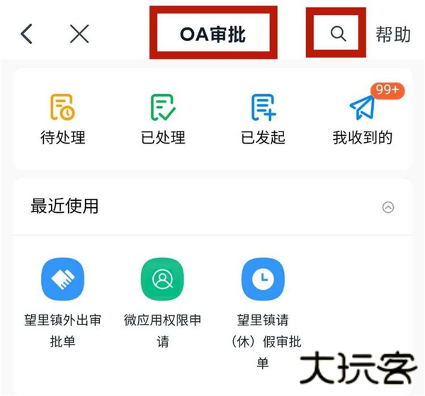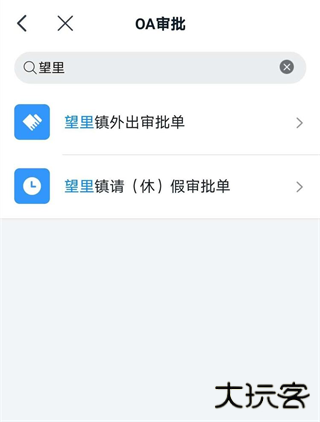 2、进入OA审批界面,请点击右上角搜索“望里镇外出审批单”或“望里镇请(休)假审批单”