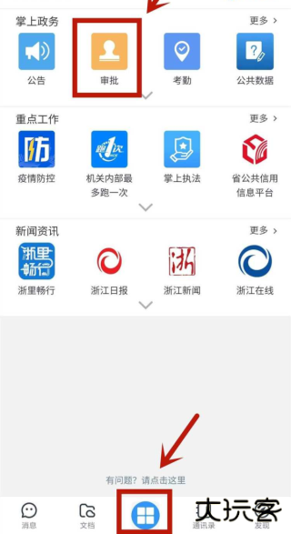 1、在本站下载安装后,打开软件,进入,“浙政钉”选择“审批”