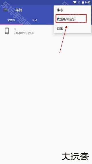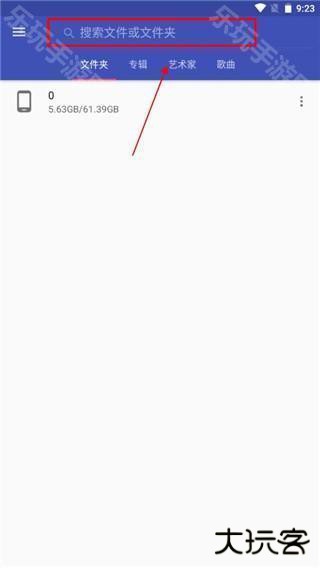 1、在乐玩下载并安装软件后打开,进入软件首页后可以直接搜索手机内的文件夹寻找歌曲;