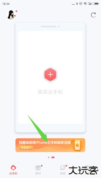 另外,点击个人头像,进入用户中心,也可以点击“购买云手机”呼出云手机购买功能栏。
