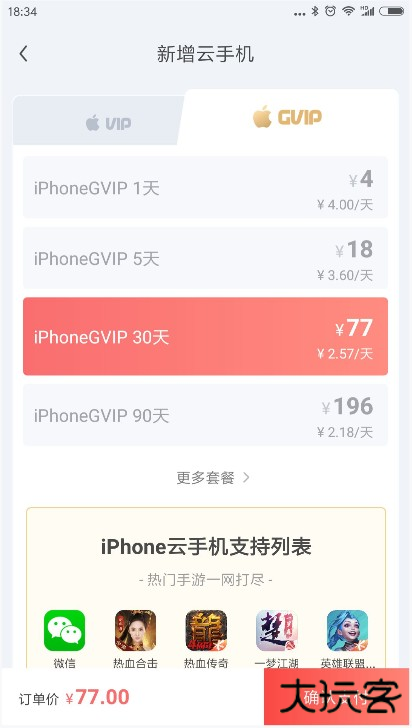 3)点击确认支付完成支付,点击确认。成功支付后用户主界面将增加一台ios系统云手机。